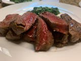 Served with steamed garlic or spinach, garlic oil, and French fries.